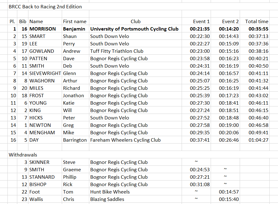 Race 2 - Thursday 27th Aug – P901/10 - Start 19:30 – HQ – Aldingbourne Sports and Community Centre Car Park